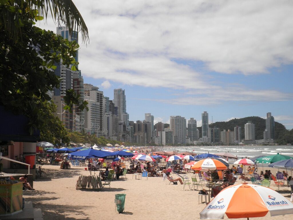 Trata-se de Balneário Camboriú, localizada no litoral norte de Santa Catarina. Mesmo com apenas 46 quilômetros quadrados, o município concentra uma das maiores densidades de prédios altos do Brasil e um padrão de vida elevado.